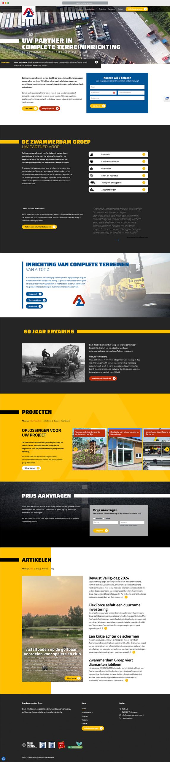 De Zwammerdam Groep wilde een nieuwe User Interface en Design om te conversie te verhogen. En het dagelijks beheer van de website zelf in handen nemen. Daarvoor zochten ze een zo intuïtief mogelijk te gebruiken systeem. Ze wilden een nieuwe website met een andere, modernere uitstraling, die ‘groter’ aandoet, past bij hun huisstijl en bij het vakgebied “de bouw”. Ook wilden ze meer focus op het inrichten van complete terreinen, in plaats van alleen de deel-competenties (zoals bv. asfalteren) te benoemen.